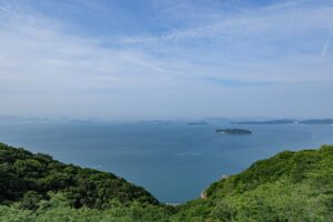 眼下に瀬戸内海が広がり、天気が良ければ四国まで見えることも。そして遮るものがない青々とした空が広がっています。