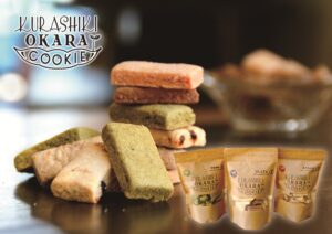 倉敷市児島に本店をかまえるもとや。国産大豆の生おからを使用した、素朴なクッキーです。甘さ控えめなのでついつい食べ過ぎてしまいます。低カロリーで素材にこだわったクッキーです。